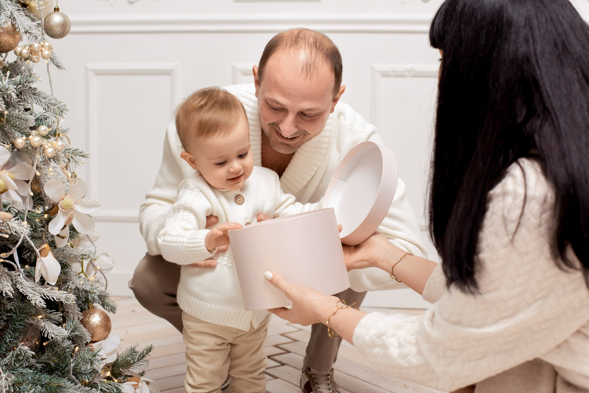 Семейная Новогодняя фотосессия в студии в Ростове для Александра, Анастасии и Ольги